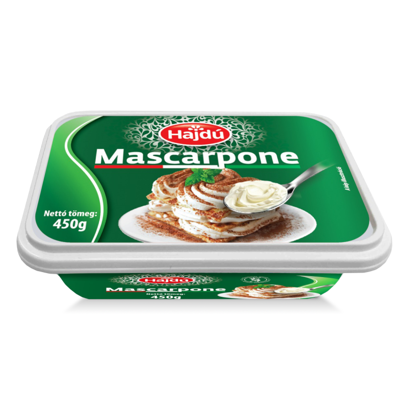 A Hajdú Mascarpone kenhető termékcsaládunk egyik legsokoldalúbb tagja. Segítségével számos torta és sütemény készíthető, valamint az ezekhez szükséges krémek is könnyedén kikeverhetők. Tippünk: kevés tejjel higítva, habverővel pillanatok alatt hihetetlenül habos, friss krémmé alakítható.